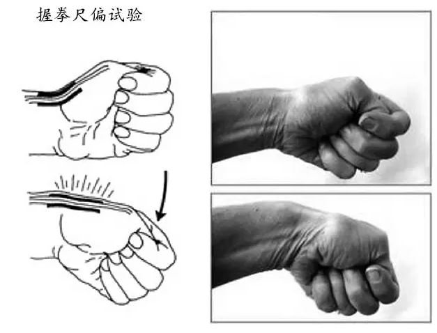 存在上述症状,并且握拳尺偏试验阳性,即在查体时拇指屈曲,其余四指握住拇指的状态下,使腕关节向尺侧(小拇指侧)偏斜时疼痛加剧,即可诊断。