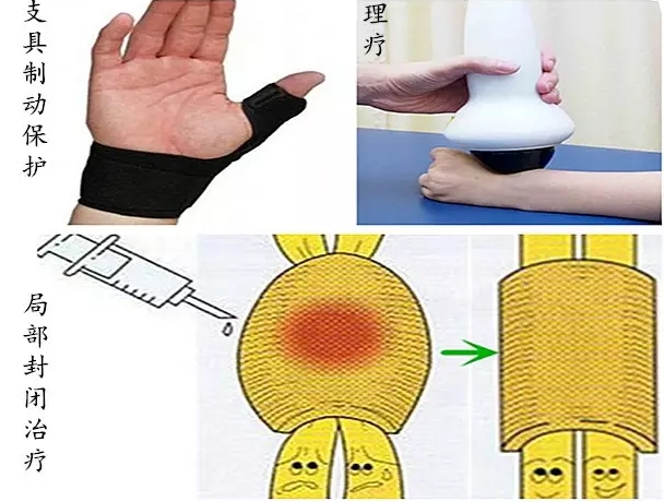 初诊或症状较轻时,可采用制动、理疗或局部封闭保守治疗。