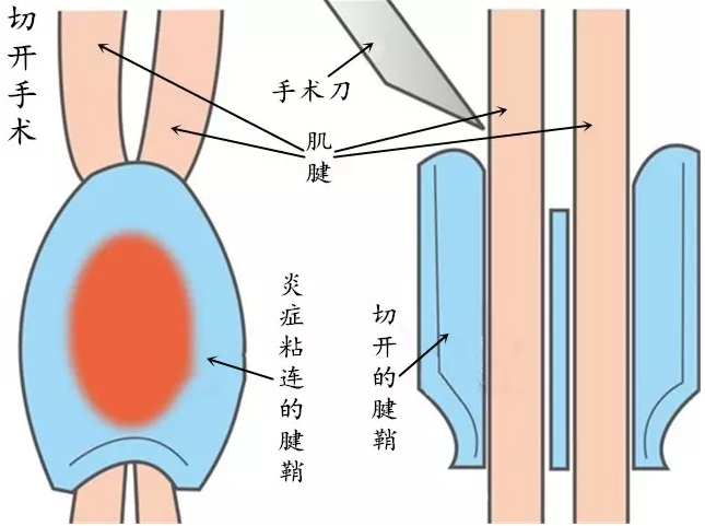 如果此处有肌腱粘连也应同时松解;