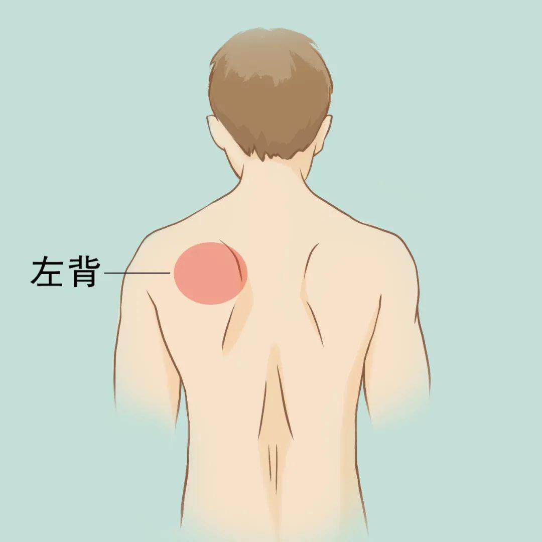 人的心脏通常偏左,所以心脏疾病所引起的后背痛一般在心脏对应处——左背。有时,左肩、左手臂内侧也会受到牵连,其中以心绞痛、心肌梗死、急性主动脉夹层多见。