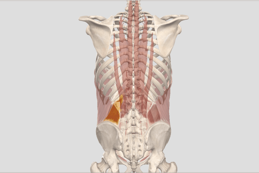 腰方肌作用:下降和固定第12肋,并使脊柱和腰部侧屈和后伸。