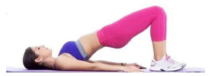 仰卧位,臀部发力,以腰部实现力量收缩抬臀为主。两臂体侧放置,双脚并拢,屈膝伸髋,屈膝角度可达 90°-120°,必要时增加平衡垫提高不稳定性。